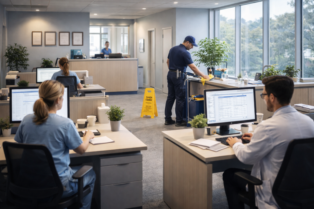 Rely Base™ provides structured facility care for medical offices focused on non clinical areas including reception spaces, administrative offices, restrooms, and common areas.