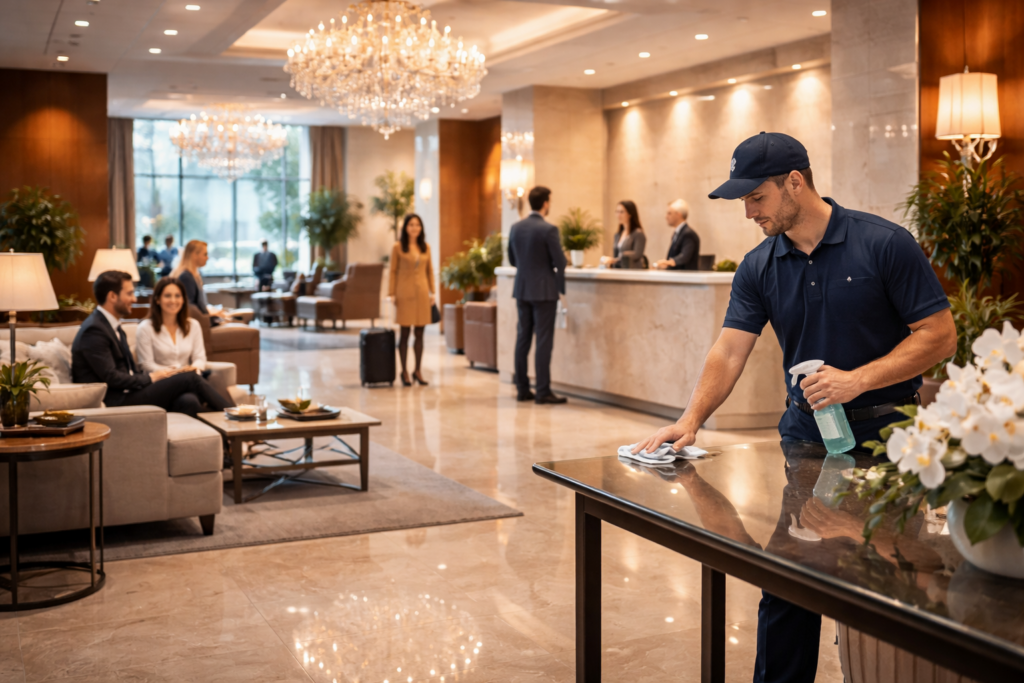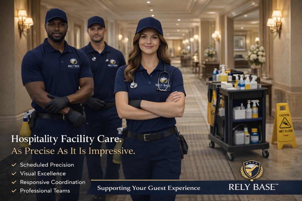 Rely Base™ provides subscription based facility care for hotel common areas, lobbies, corridors, and shared spaces where consistency and guest perception matter.