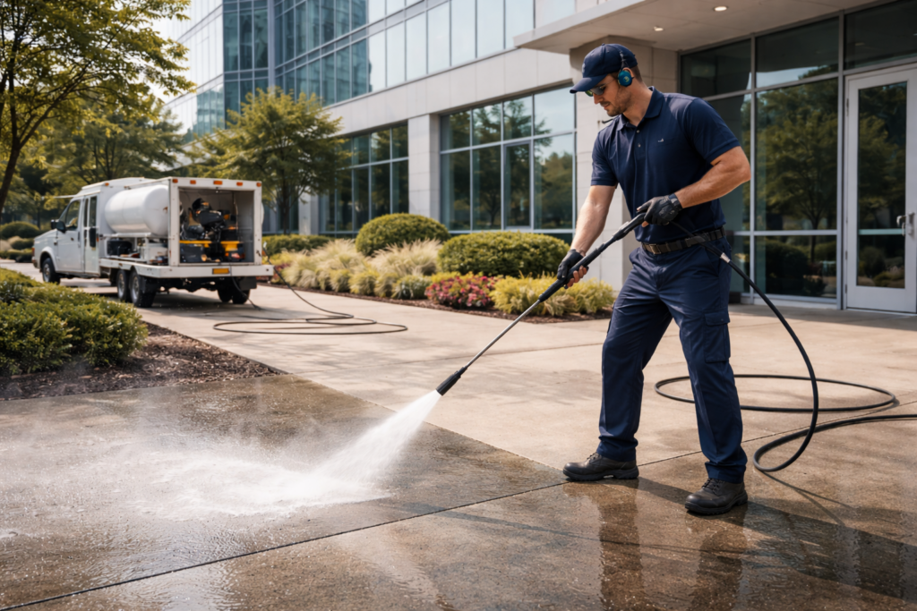 Rely Base™ provides commercial pressure washing services for offices, commercial buildings, hospitality properties, and approved facilities.